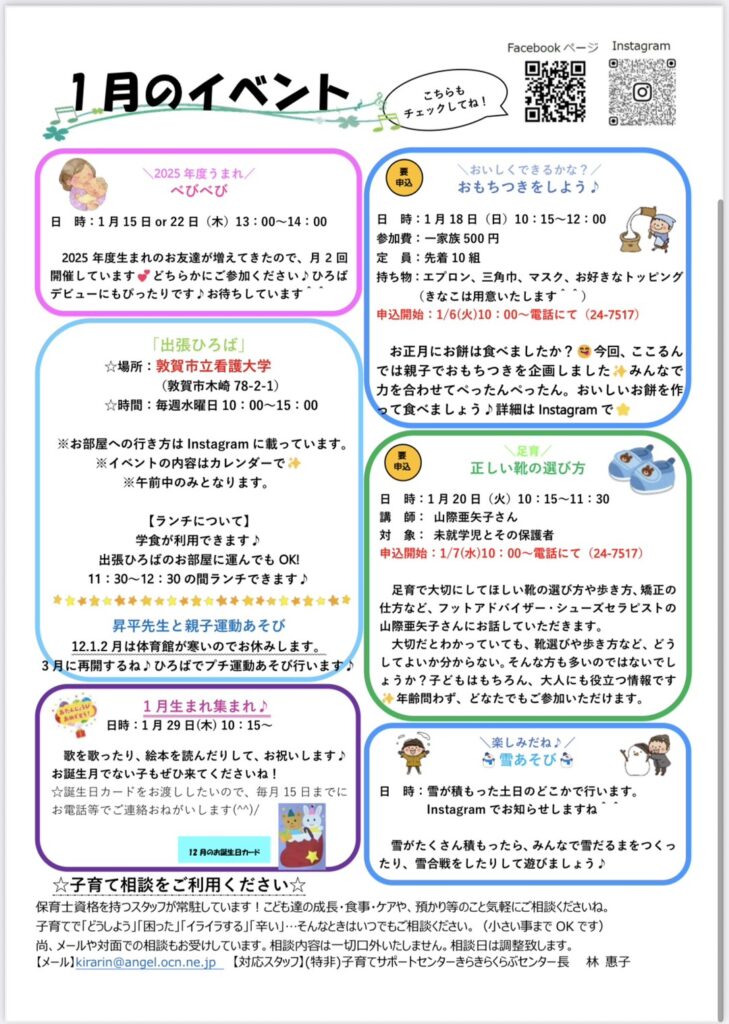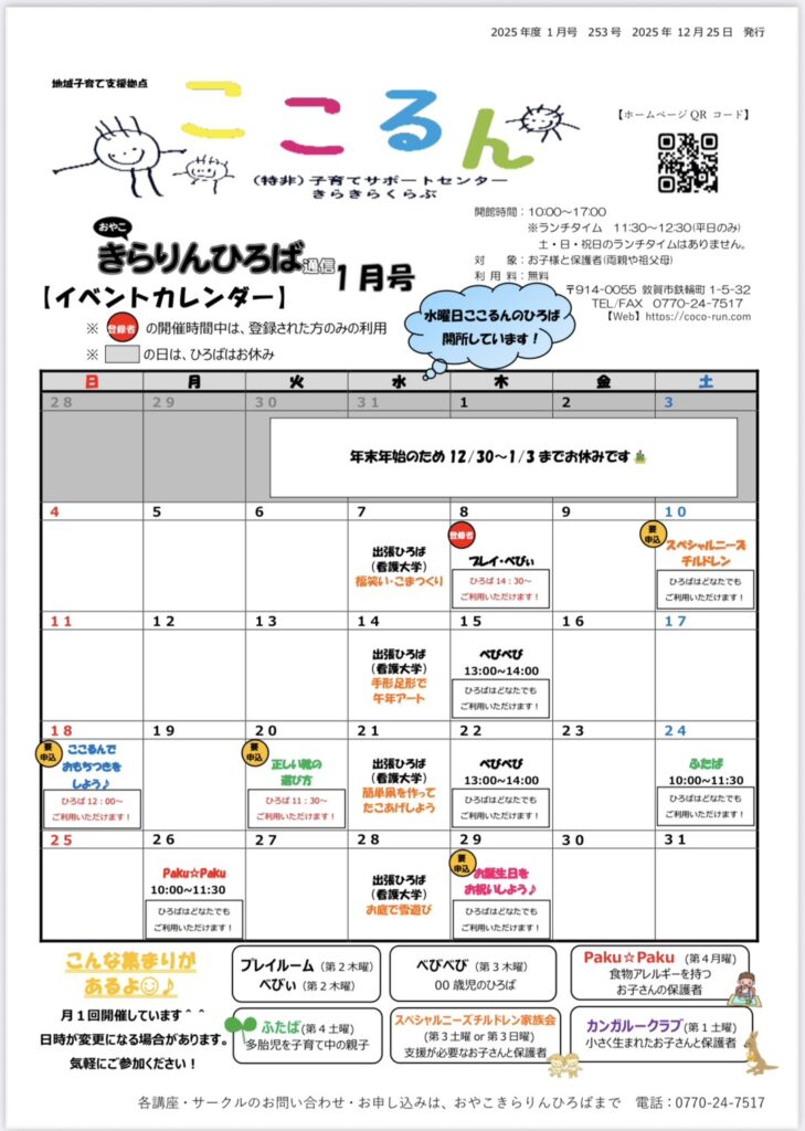 2026年1月おやこきらりんひろば通信
